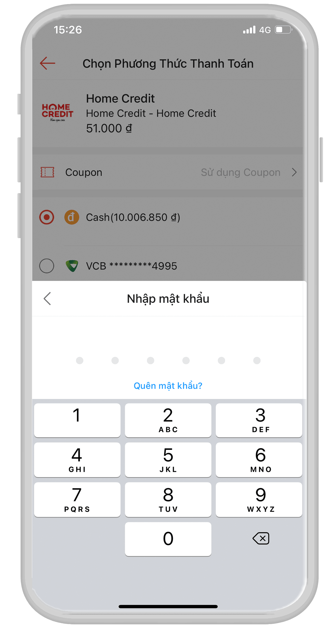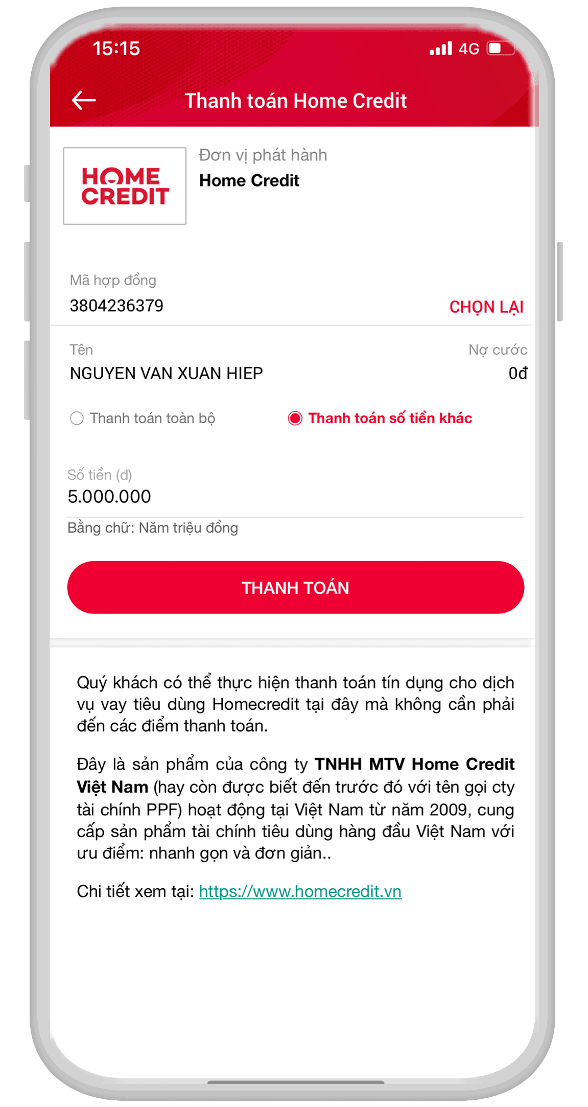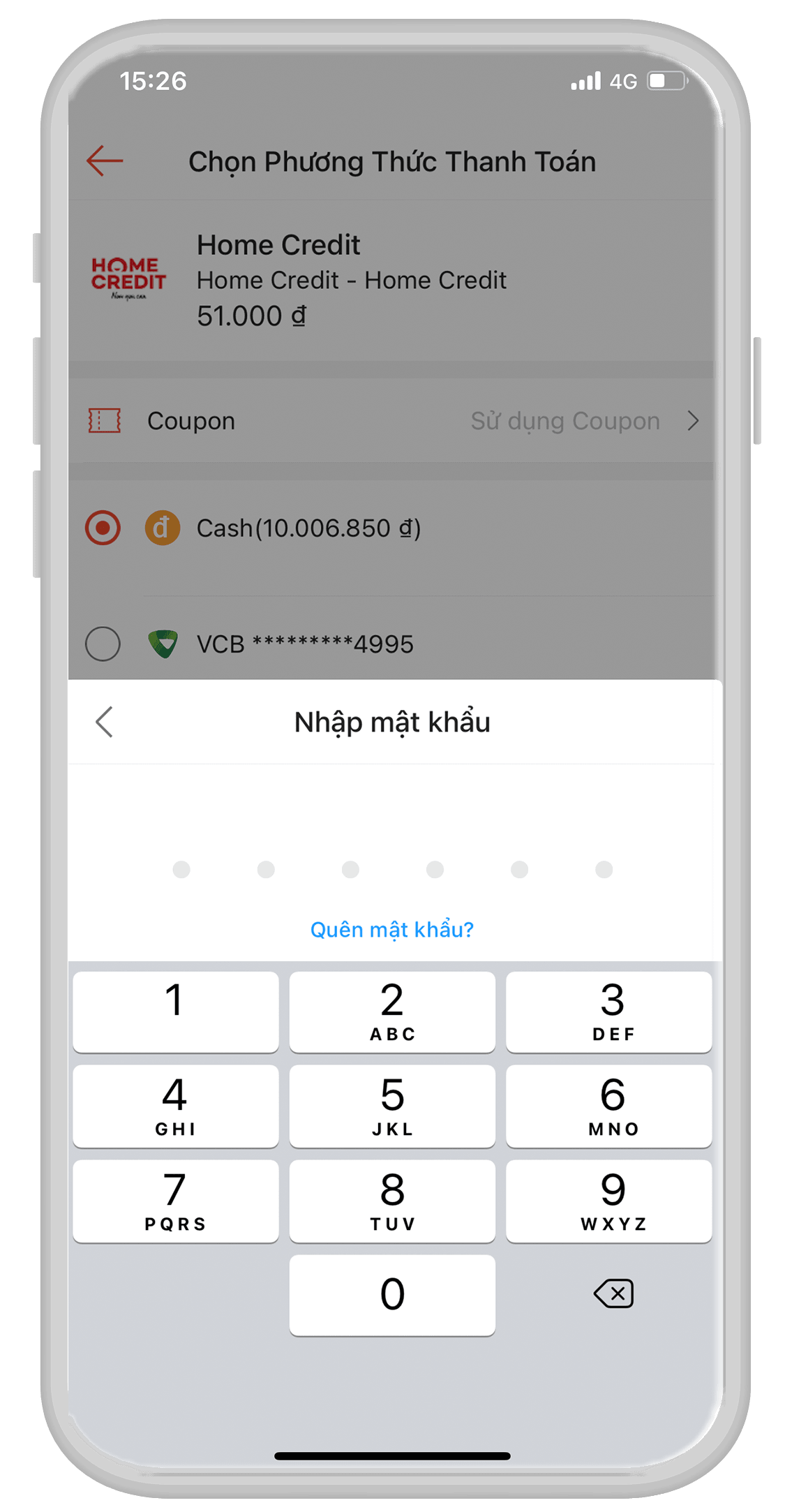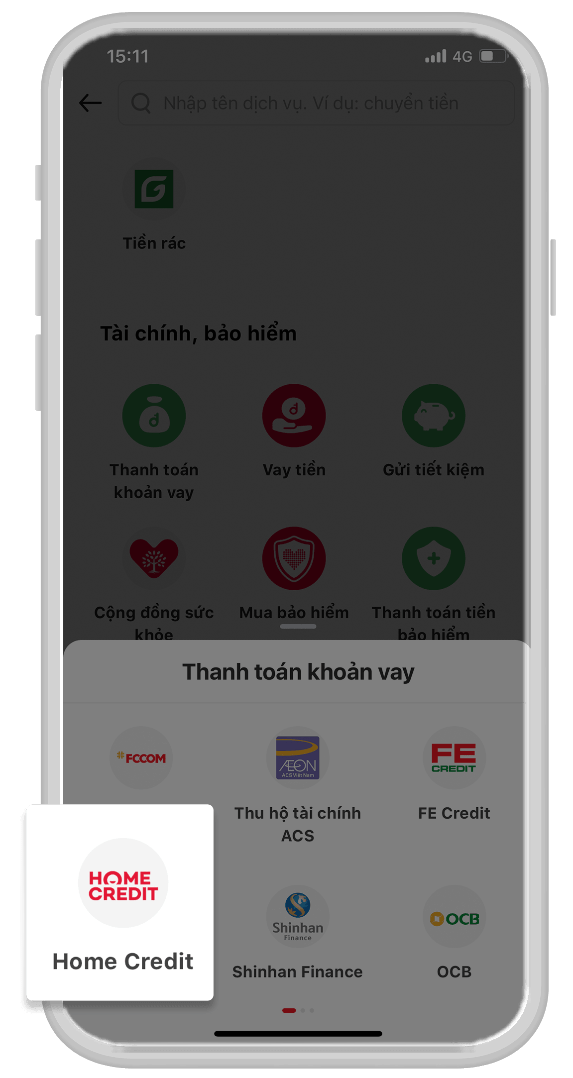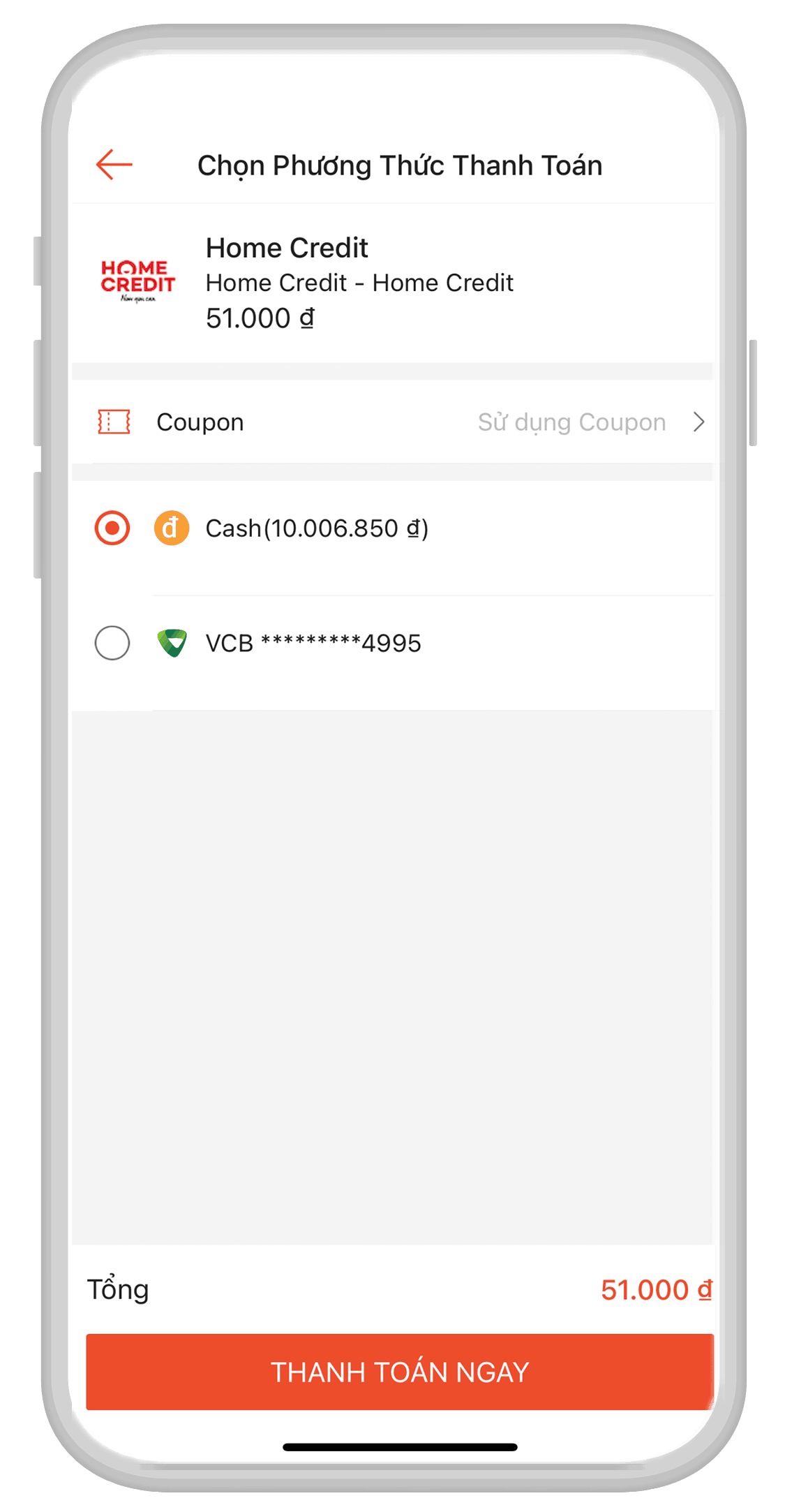 1. Thanh toán qua ứng dụng Home Credit