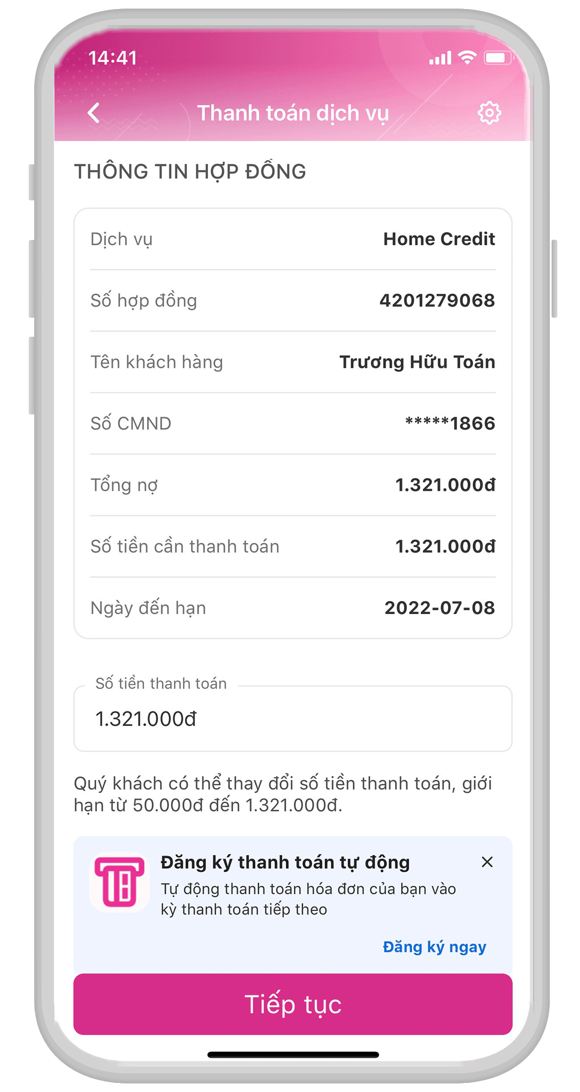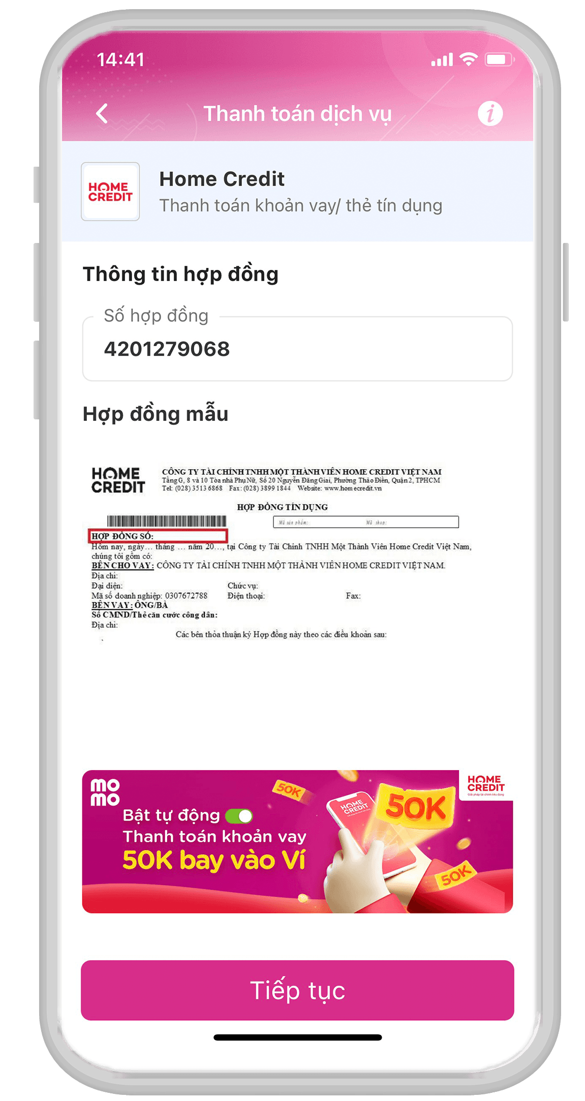 - Số hợp đồng: 420XXXX138