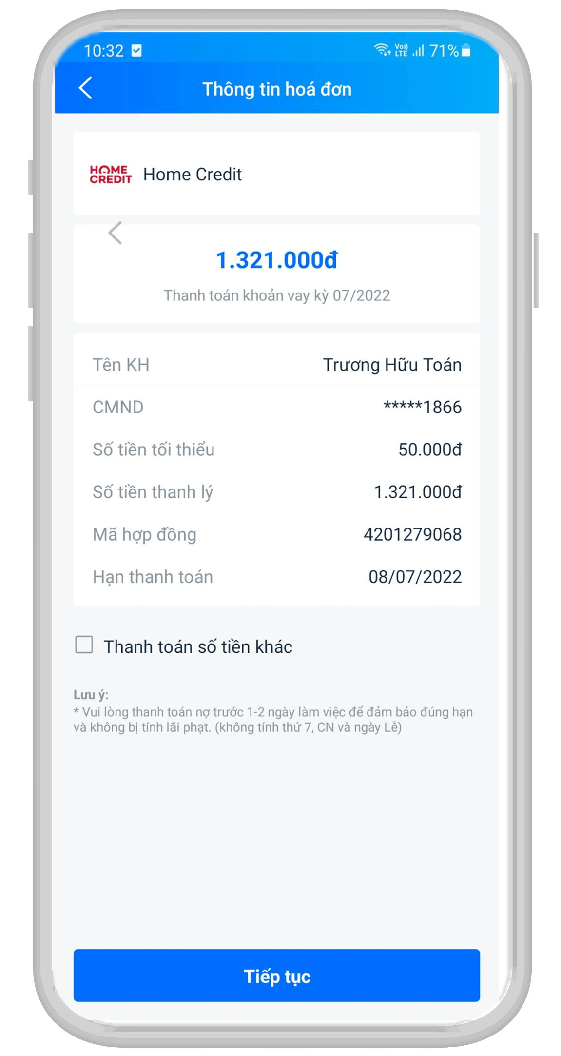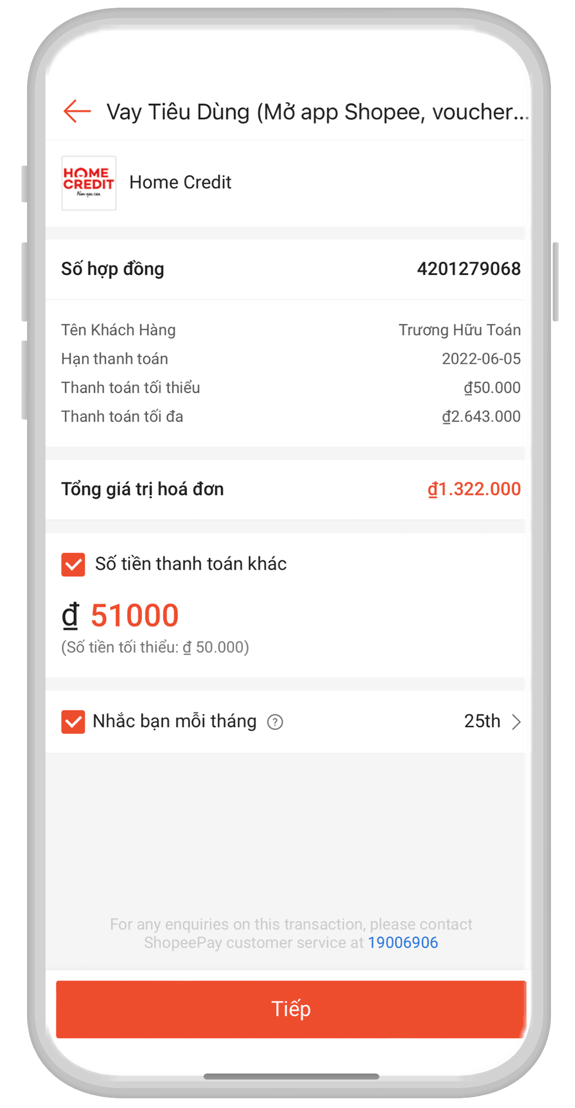 Hướng dẫn thanh toán dư nợ tài khoản trả sau Home PayLater