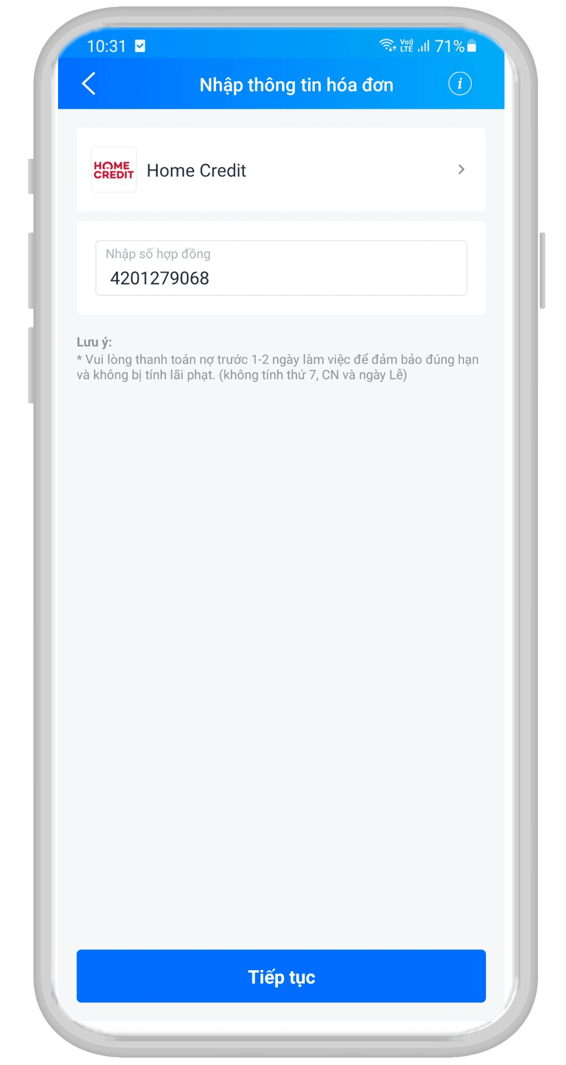 Bạn chỉ cần cung cấp số hợp đồng vay cho nhân viên cửa hàng để được hướng dẫn